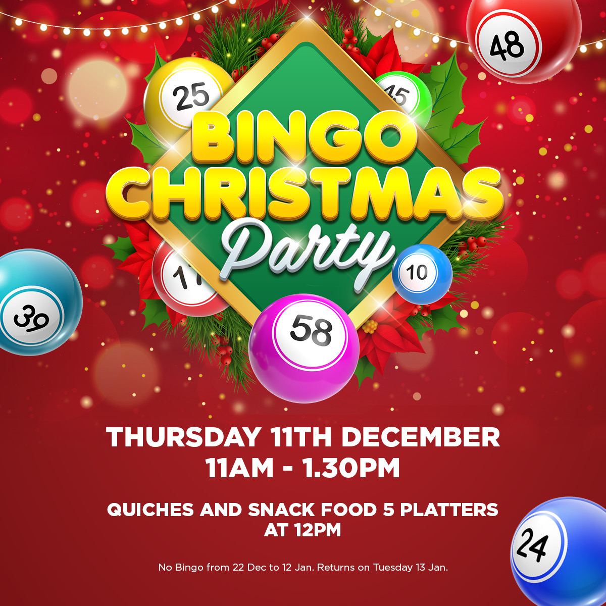 Please note: No Bingo from 22 Dec 2025 to 12 Jan 2026. Bingo returns on Tuesday 13 Jan 2026.